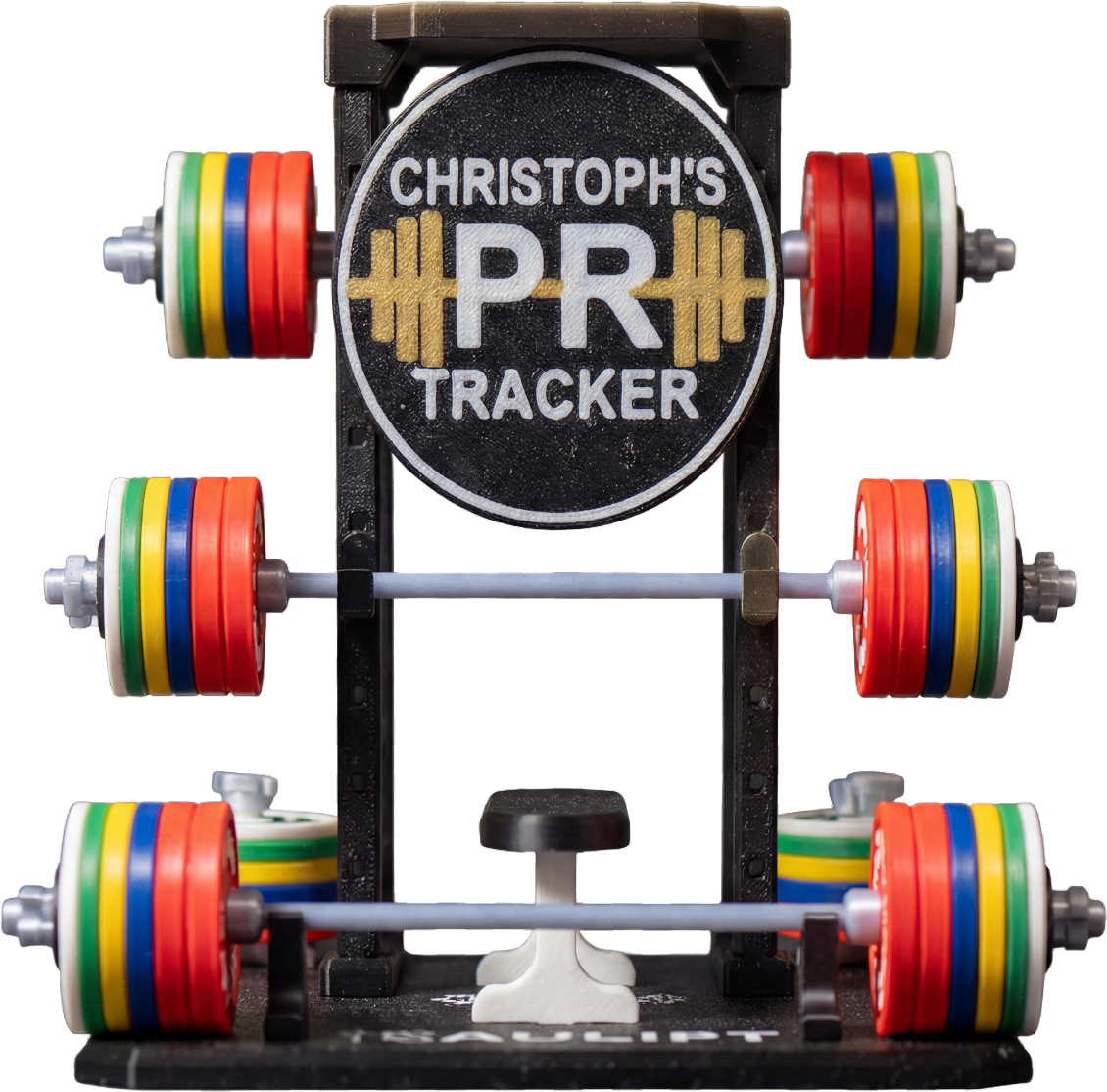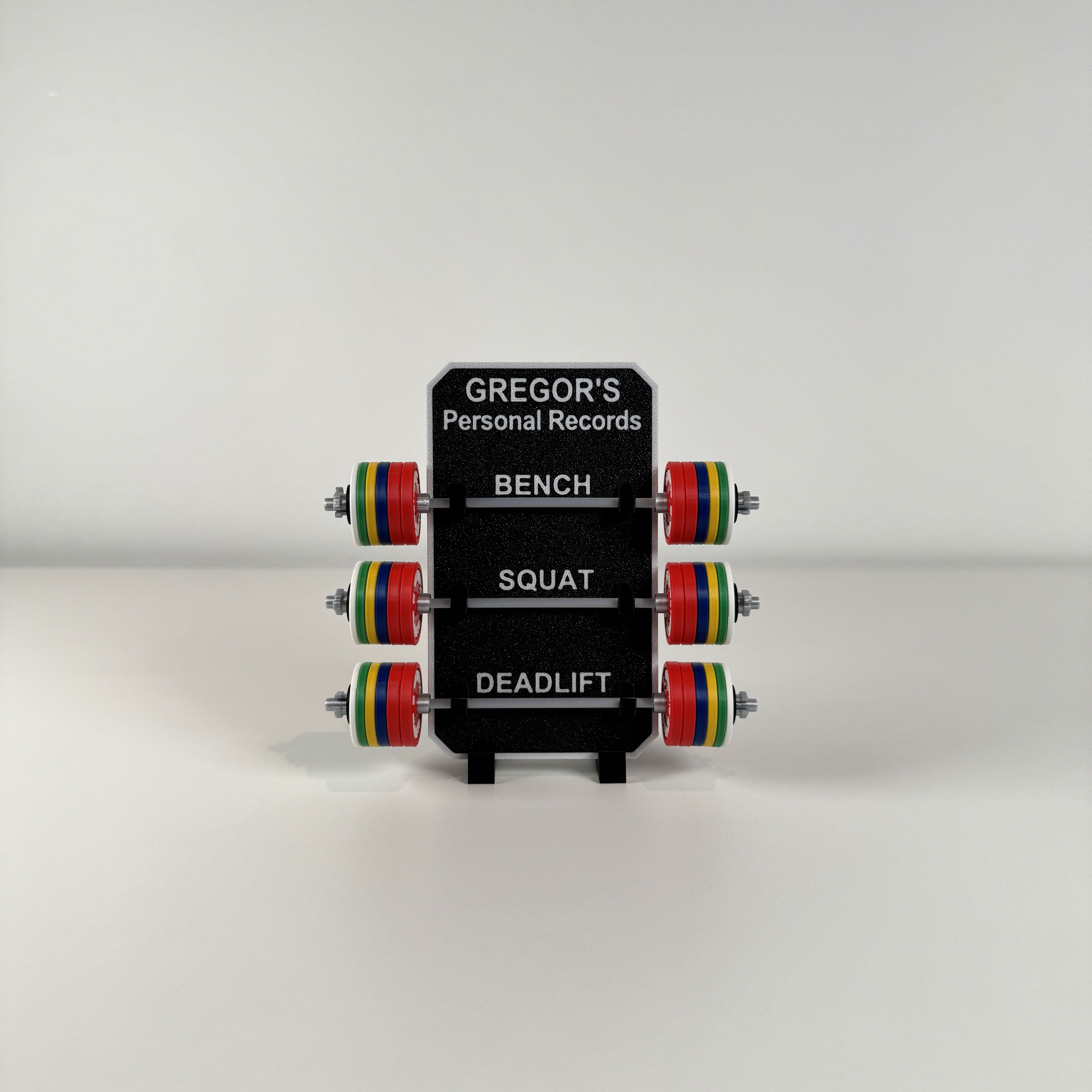 A physical, screen-free way to track your personal records and turn effort into something visible.